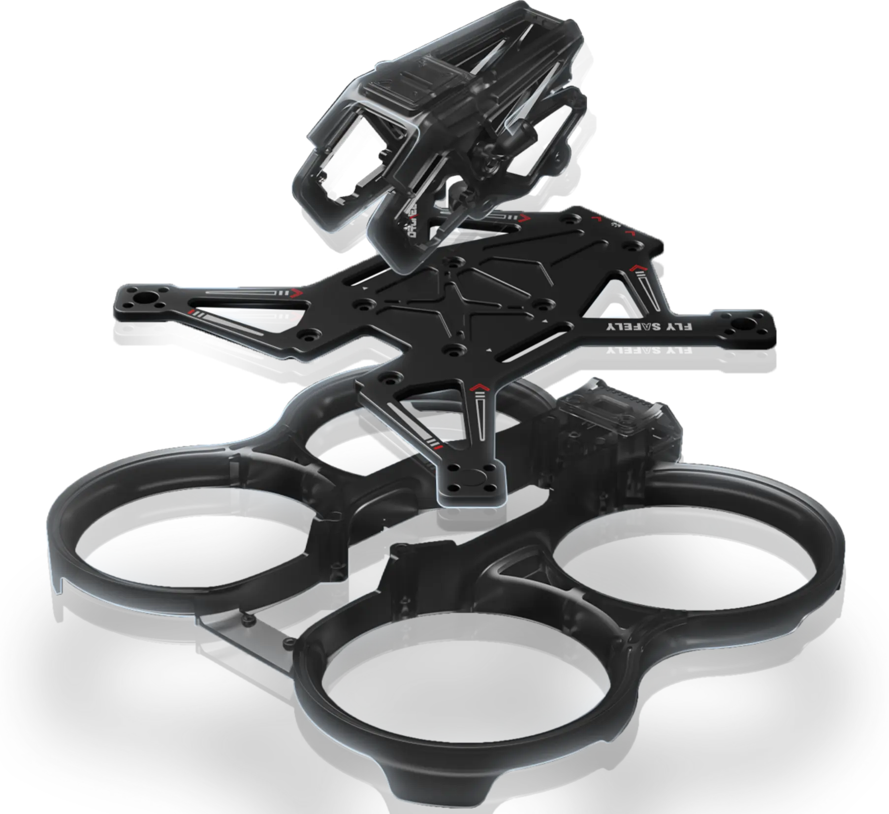 双层结构桨叶保护罩,镜头防护框,为穿越机打造“空中保险杠”。有效保护飞手,螺旋桨,电机,和周围环境。高强度碳纤维机身,抗摔耐炸,无惧碰撞。层层守护,稳飞安心。
