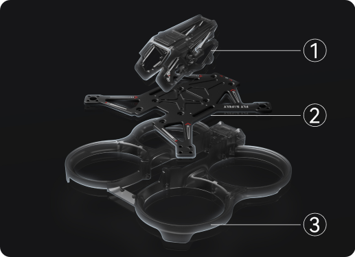 航空级T700碳纤维材质,兼顾轻量化与高强度,为2.5寸FPV 提供坚实骨架。耐冲击、抗扭曲,飞行中稳定可靠。